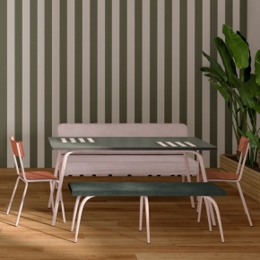 Avec son plateau en Formica, son contour peint à la main et ses coloris tendance, elle s’adapte à toutes les ambiances. Disponible en plusieurs dimensions, elle accueille 6 à 8 personnes pour des repas conviviaux en famille ou entre amis.