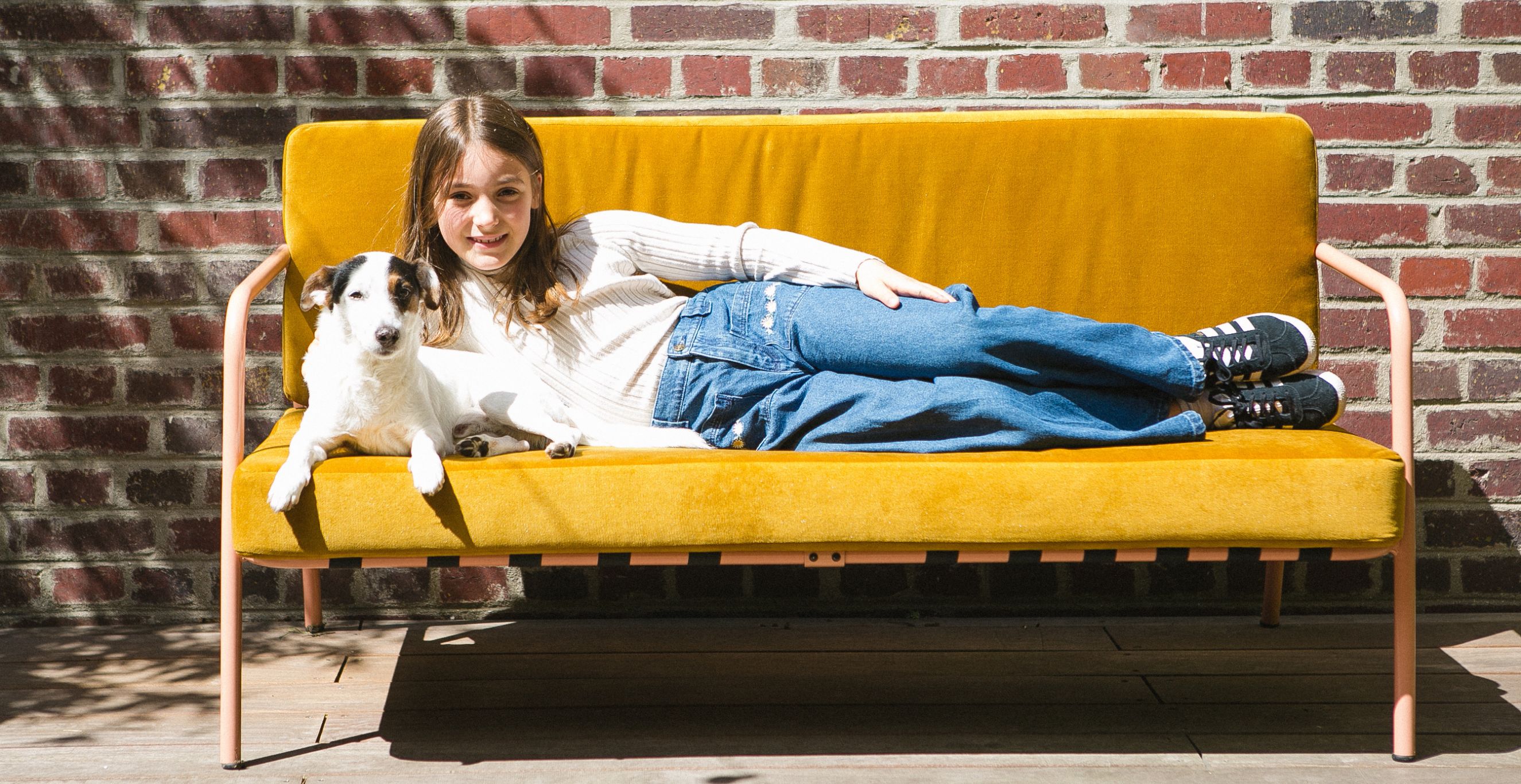 4. Entretien facile : le stratifié se nettoie avec un chiffon humide ; les tissus (velours, feutrine, coton) sont anti-feu (normes M1 et M2), déperlants et anti-tâches ; l’acier, traité avec un revêtement époxy anti-corrosion, résiste aux intempéries et aux chocs.