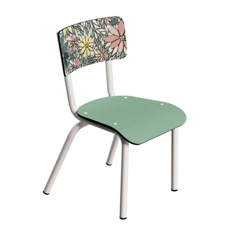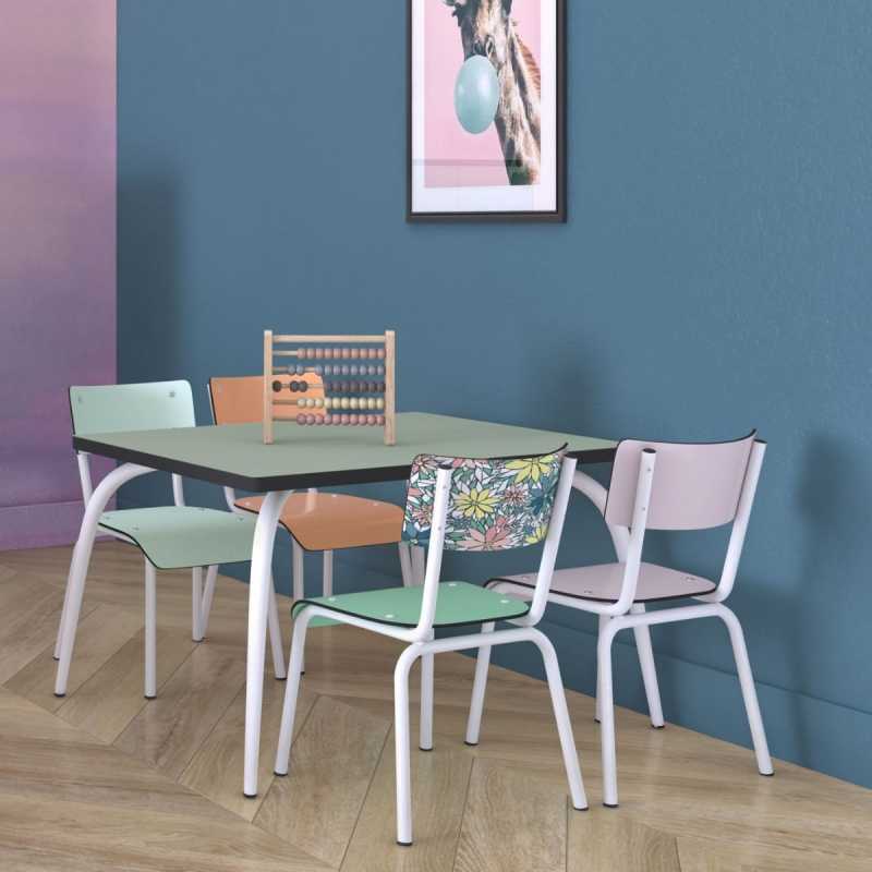 Chaise d’écolier Enfant en formica Little Suzie 3-6 ans – Dossier & Assise Uni Corail - Pieds Blancs