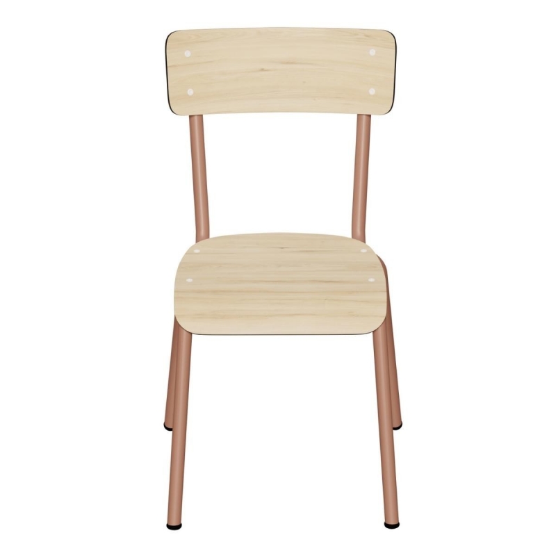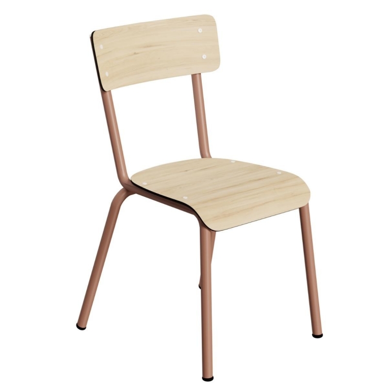 Chaise d’écolier élémentaire en formica Colette 6-12 ans – Dossier & Assise uni Bois Clair - Pieds Kaki