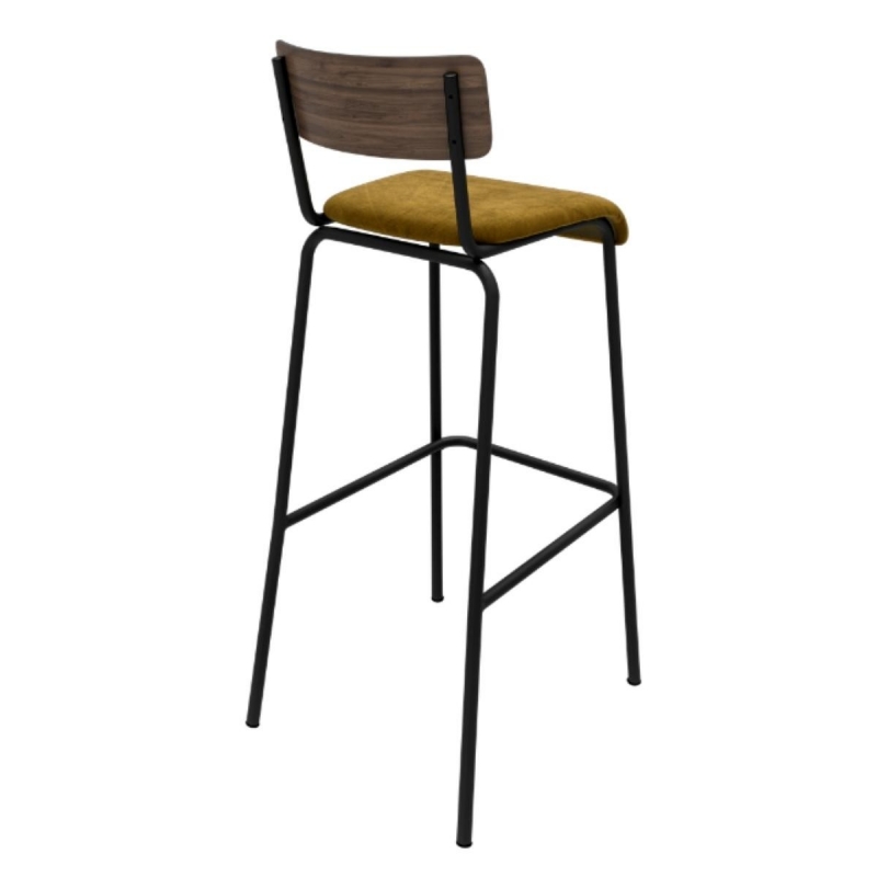 Table de bar Véra – Stratifié imprimé Bois Foncé - Pieds Noirs – 70×70