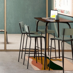 Chaise de bar Suzie en formica – uni Dossier & Assise Kaki - Pieds Noirs – H75cm