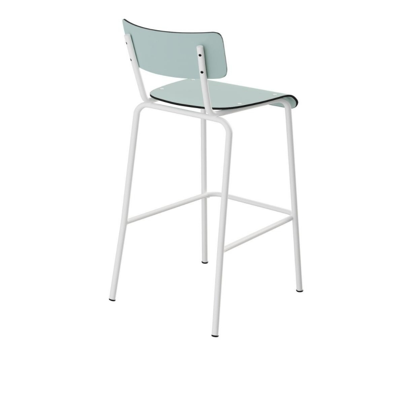 Chaise de bar Suzie en formica – uni Dossier & Assise Menthe - Pieds Blancs – H75cmPrenez de la hauteur avec la Chaise de bar Suzie Dossier...